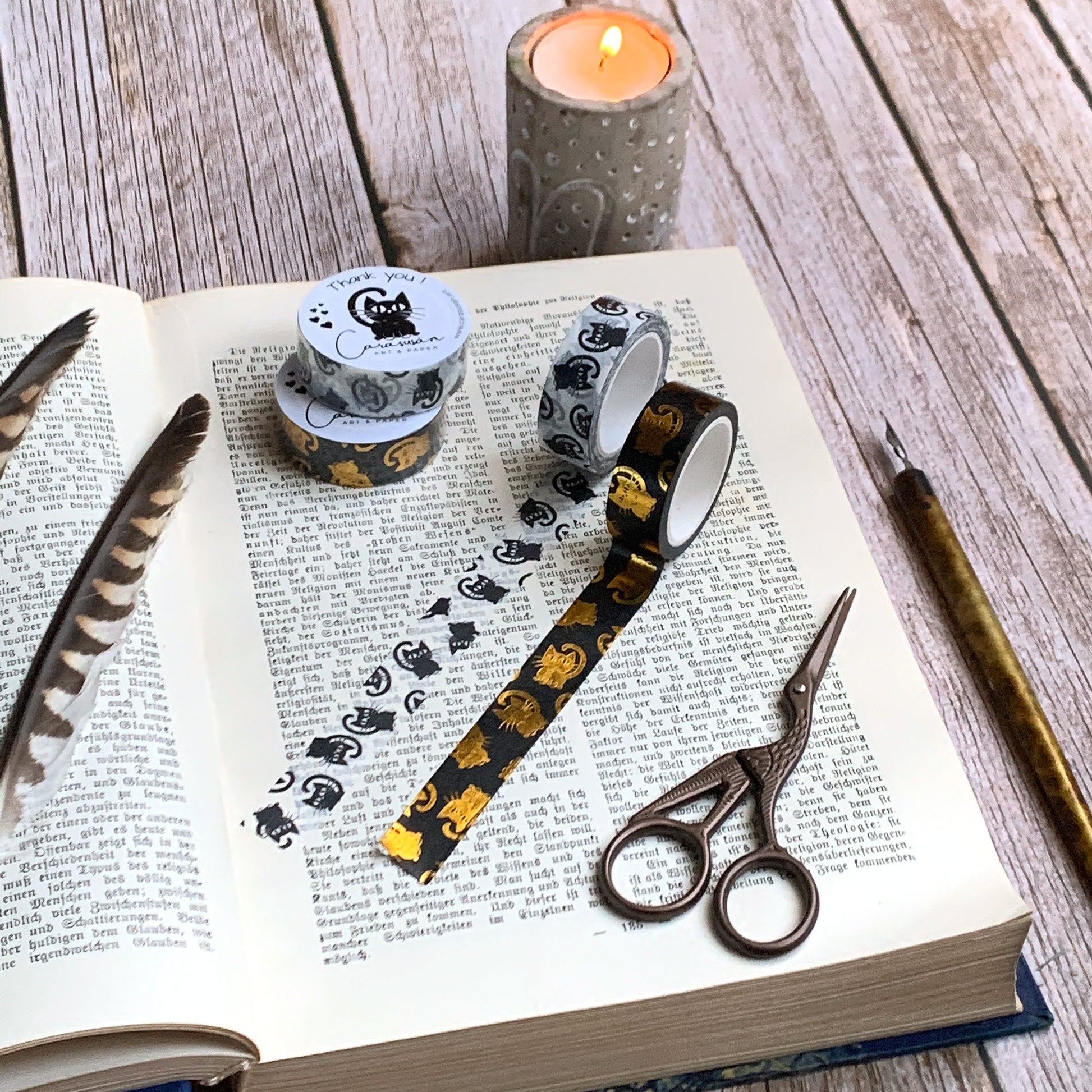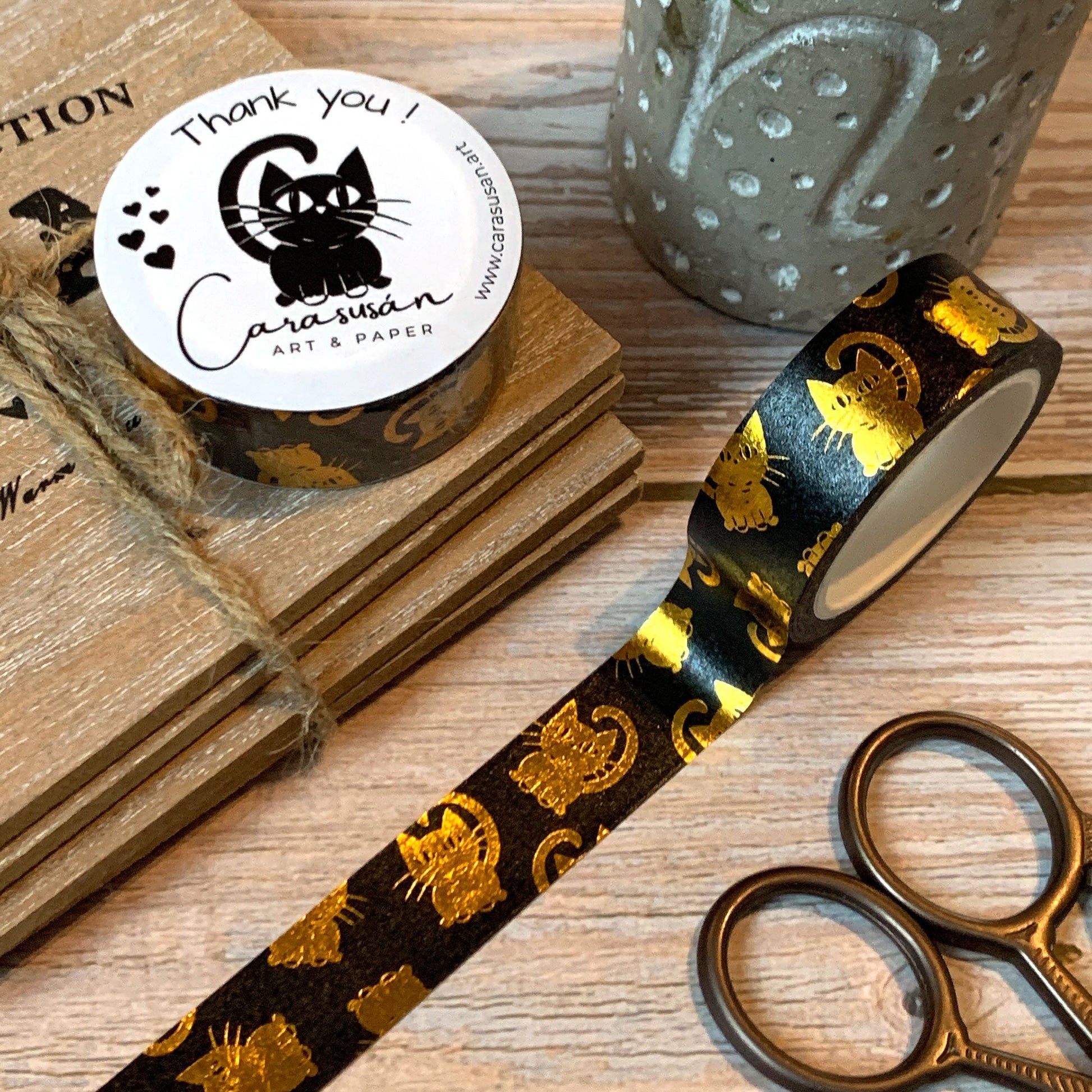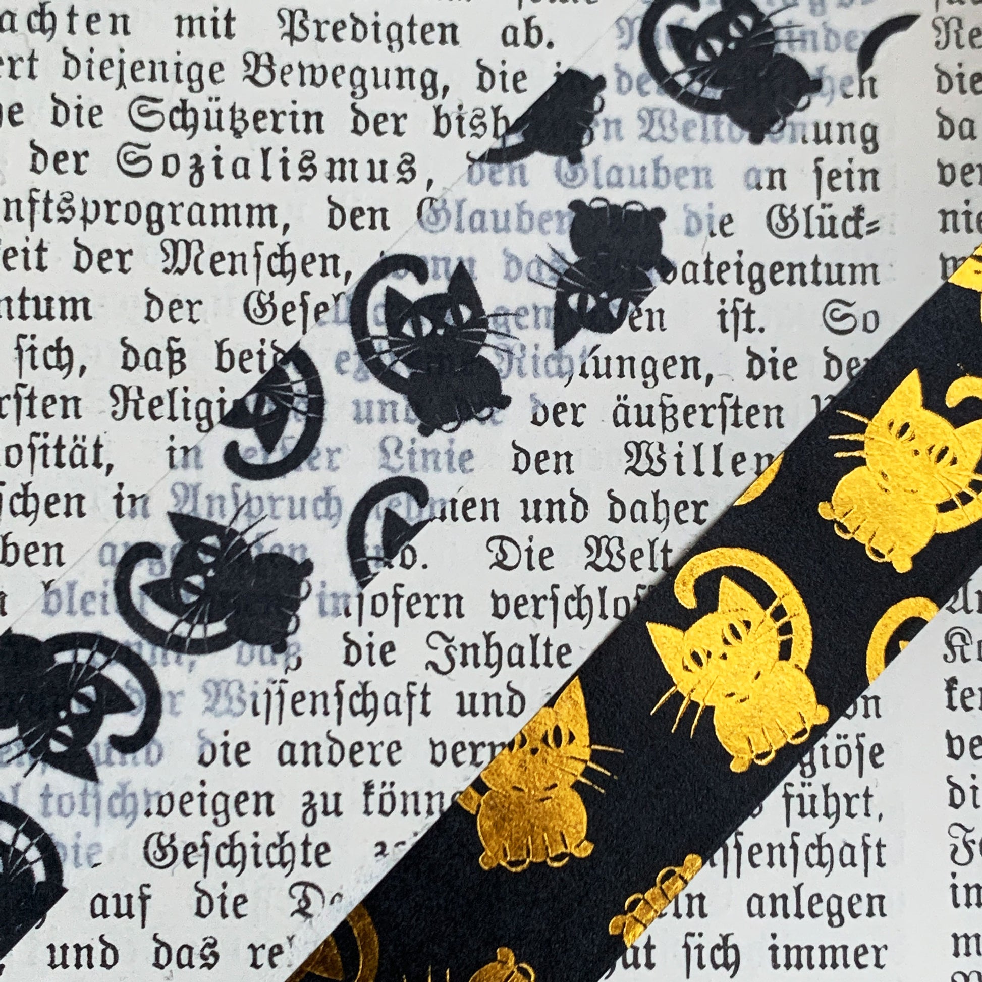 Washi Tape Set black-gold with cute cats | with gold foil print | 15mm x 10m