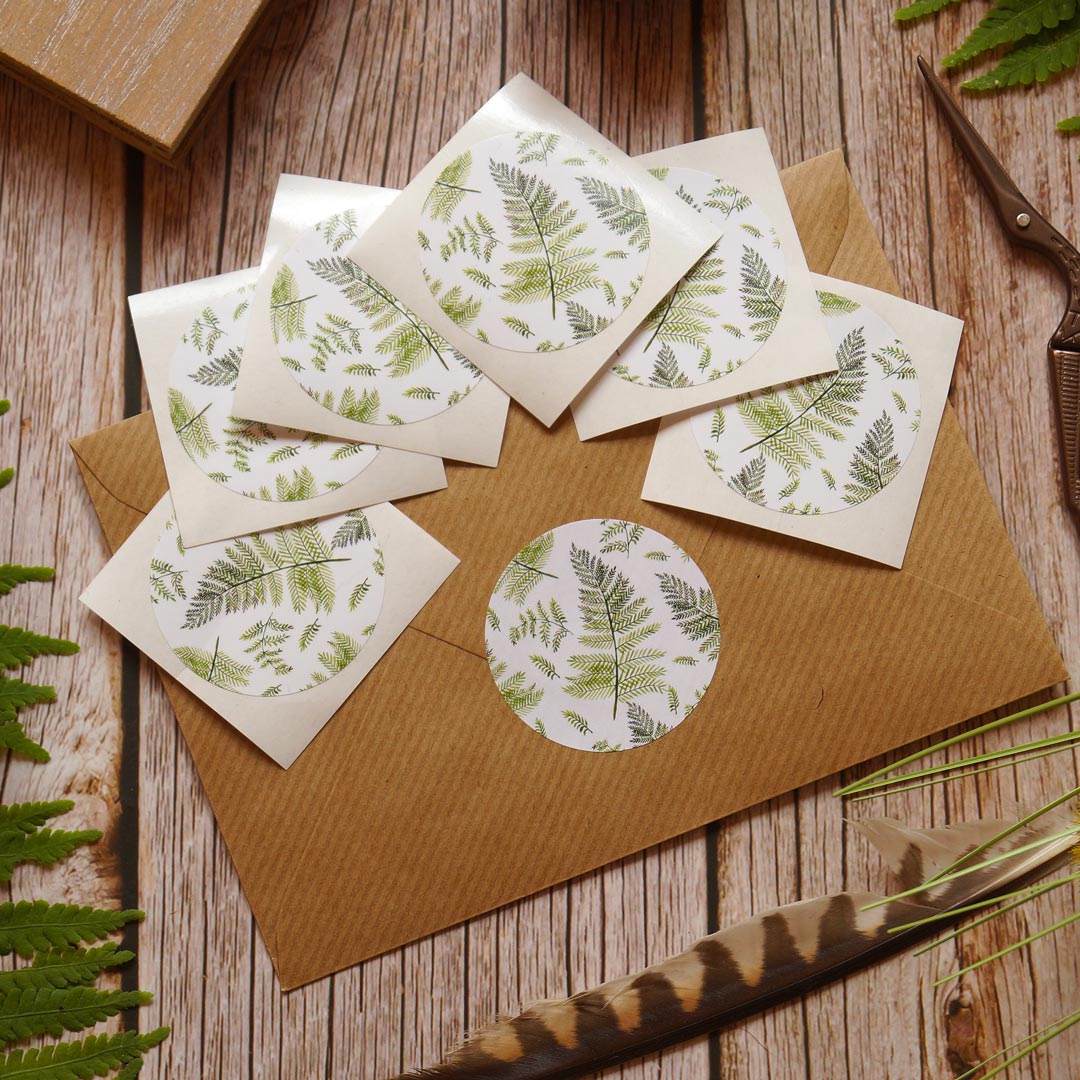 Stickers 'Botanical Ferns' | green-white | 6 letter seals | round 45mm | eco friendly paper