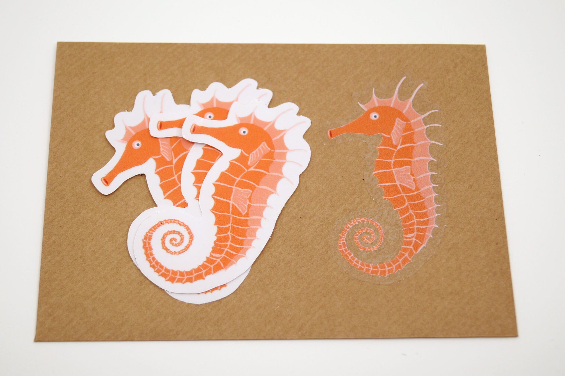 3 super cute seahorse stickers approx. 8x5cm, transparent, self-adhesive and shiny. The stickers are perfect for designing your bullet journal with maritime themes, embellishing gift packaging or sealing envelopes.
