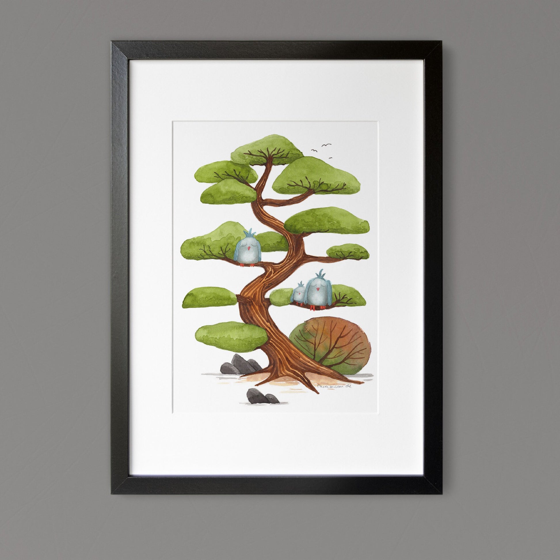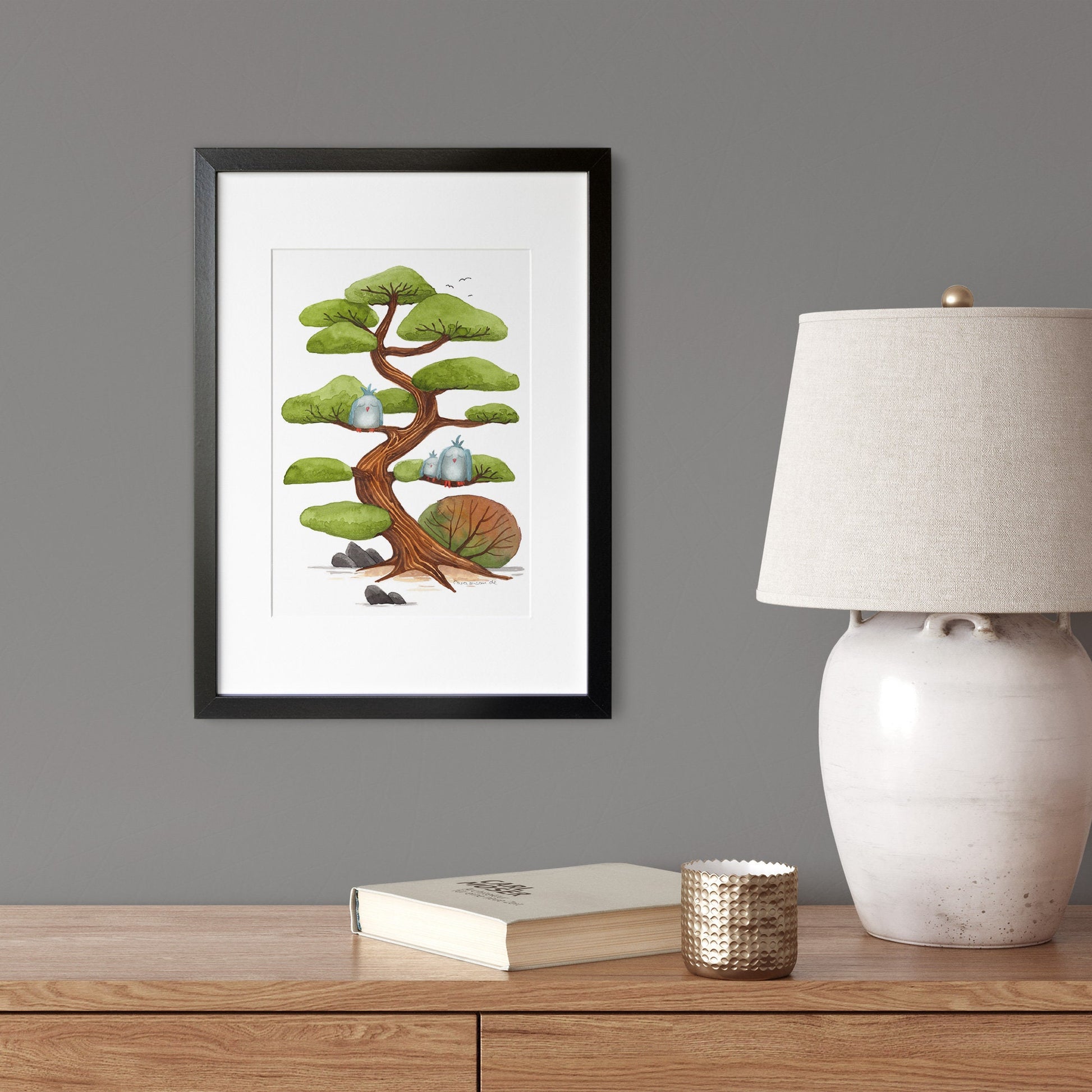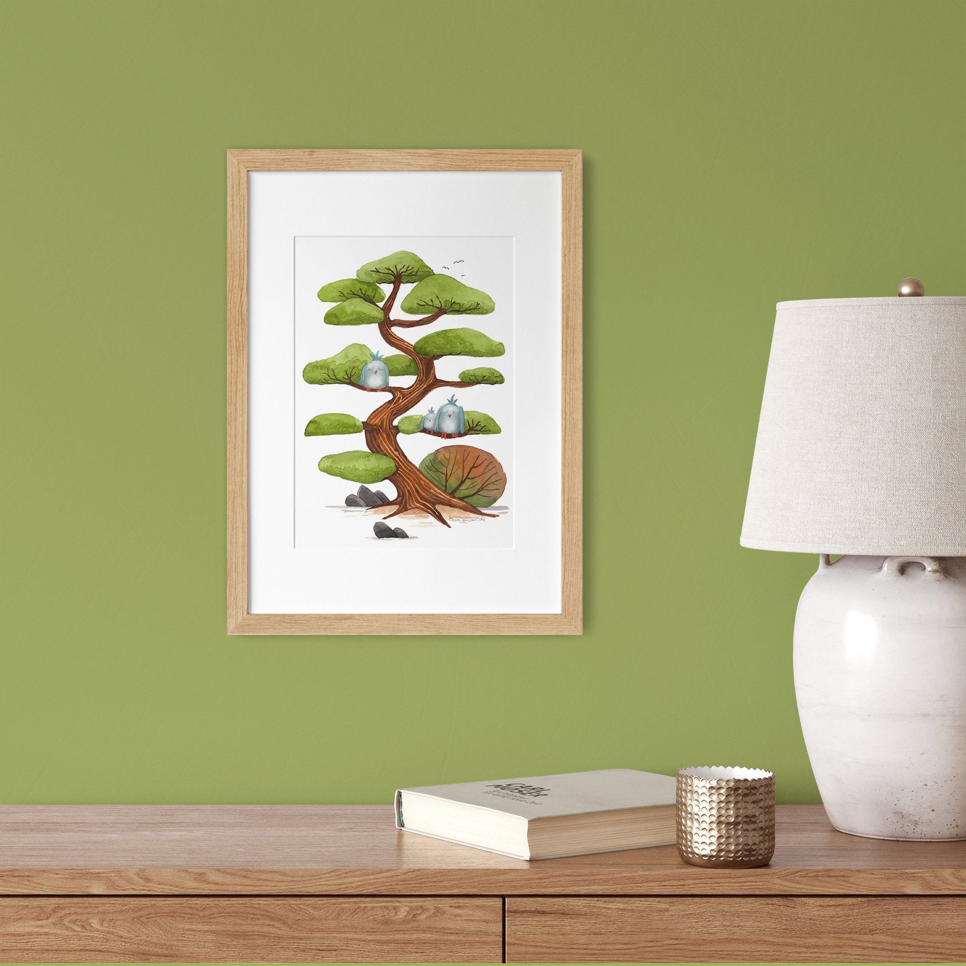 Fine Art Print auf hochwertigem Aquarellpapier von meinem Aquarell 'Wolkenkiefer' ca. 19x25cm/7.5x9.8inch inkl. Weißrand - ungerahmt (die Rahmen sind Dekorationsbeispiele).